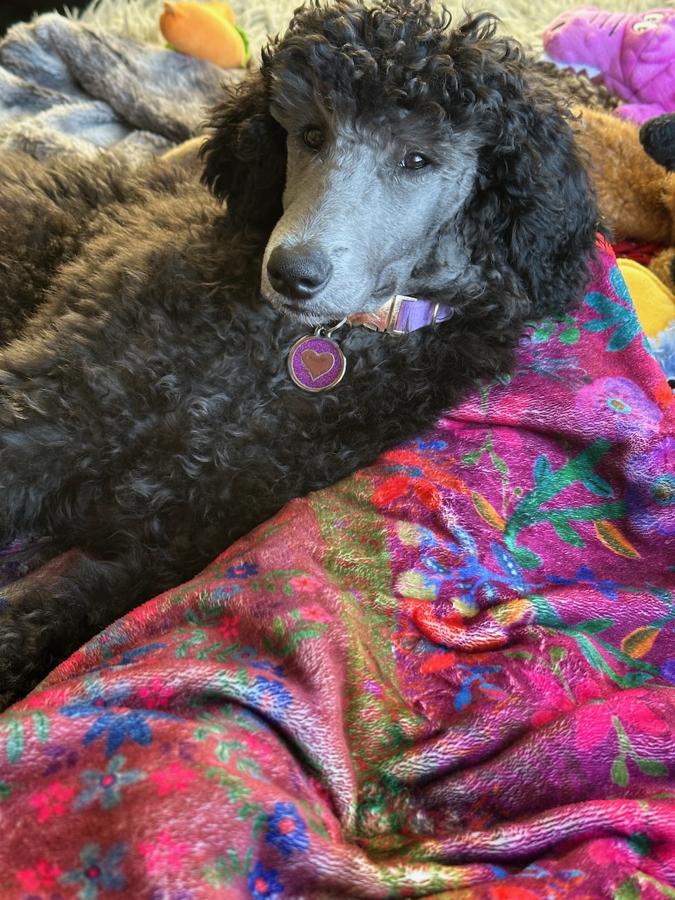 Our 6.3 year old female silver standard poodle.