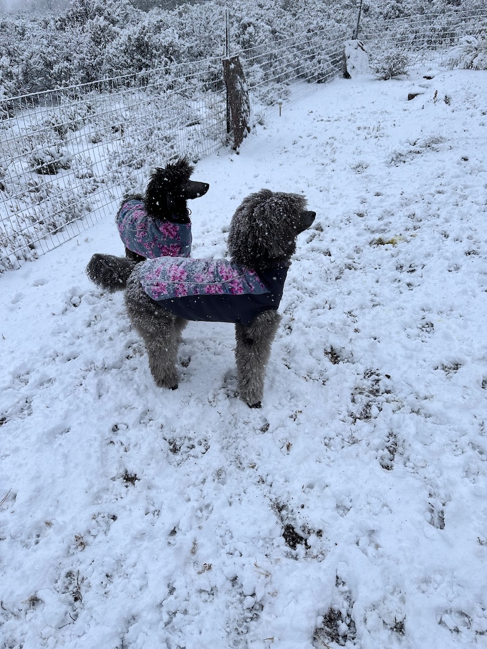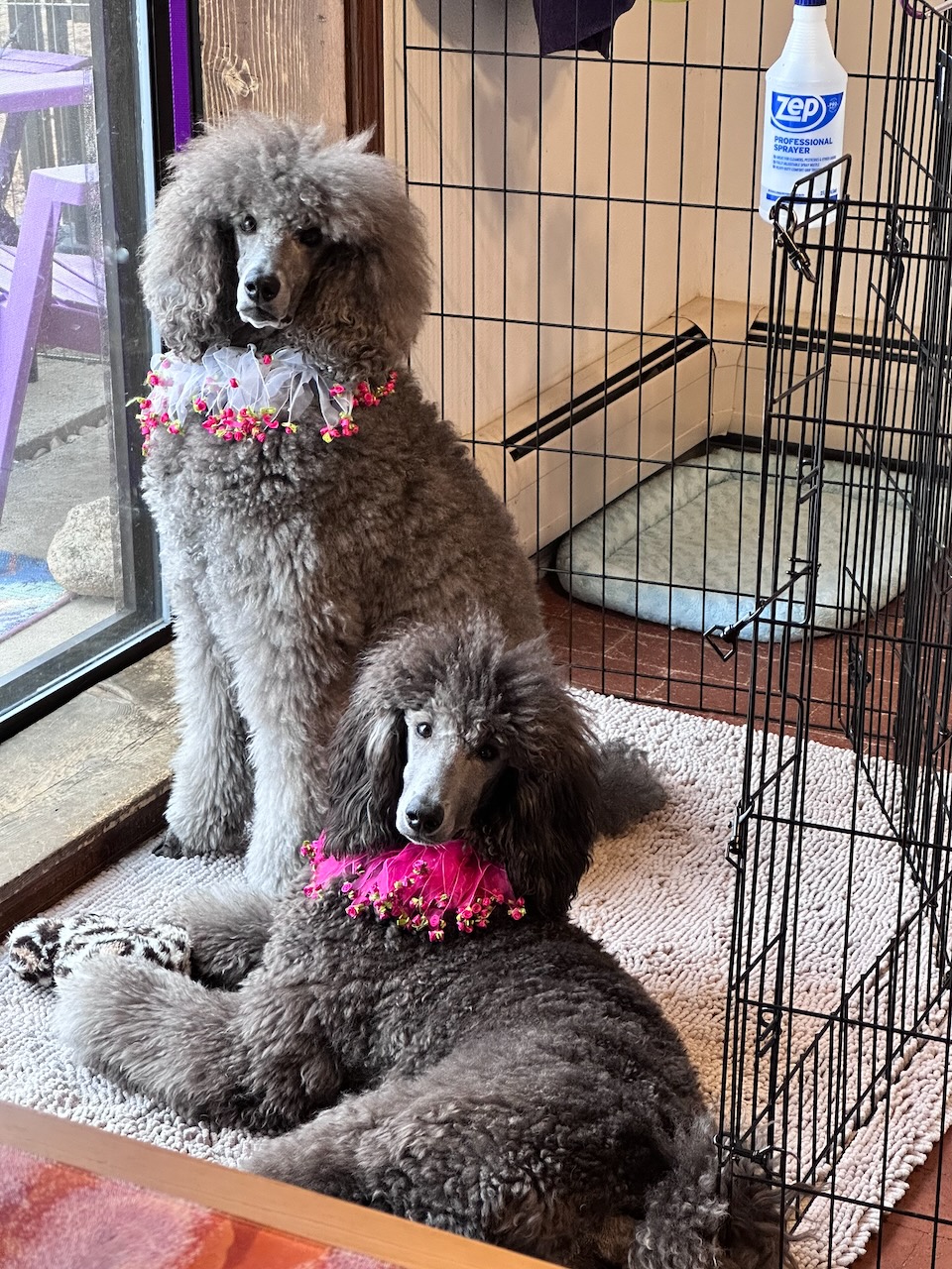 We are still waiting for the snow to show up in our neighborhood. Seems like it will never come. We love to watch Sierra play in the snow, so hopefully Savanna will get a chance to run around with Sierra in December. In the meantime, it has been such a special time having Sierra’s puppy, Savanna. A puppy is a lot of work, training and caring for her. Savanna is very rambunctious, full of energy and at times wild. She loves to attack Sierra when we go outside, so training her to be more gentle is a priority. She is handling grooming so much better, she sits before going out the door as long as we insist and waits for permission to exit. Training is constant all day in the little things. Barking is something we have not had before in our poodles, so we are working on this issue. Savanna coat is changing, with more silver grey coming in. It will take 1.6 years for her to become completely silver, like Sierra.